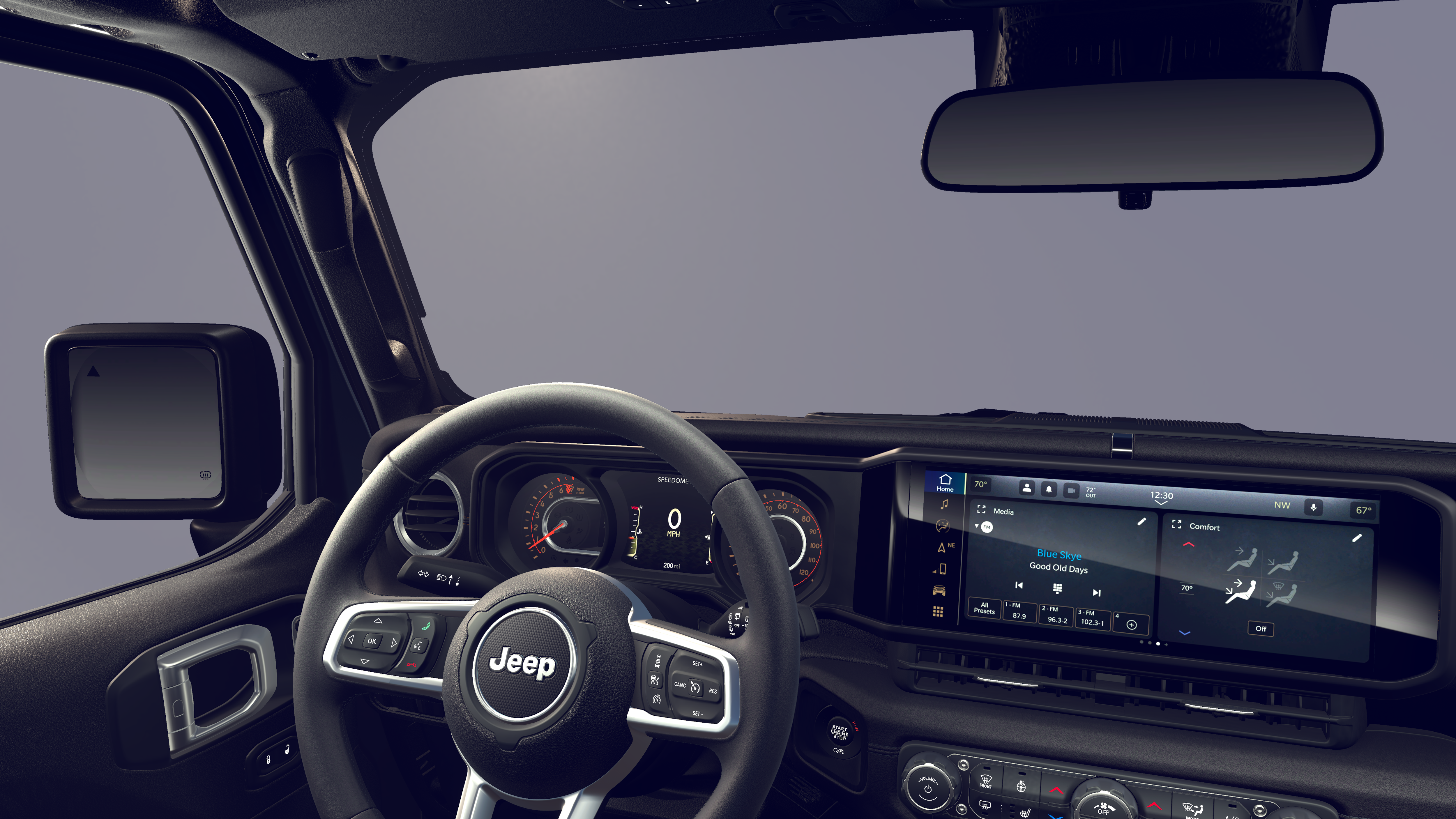 SKY ONE-TOUCH POWER TOP Rear Window Defroster, Rear Window Wiper/Washer, Removable Rear Quarter Windows, Power Top Quarter Window Storage Bag, SAHARA POPULAR EQUIPMENT GROUP Alpine Premium Audio System, Integrated Off-Road Camera, Blind Spot & Cross Path Detection, HD Radio, Rear View Auto Dim Mirror, Side Steps, Integrated Voice Command w/Bluetooth®, Uconnect 5 Nav w/12.3 Display, GPS Navigation, Auto High Beam Headlamp Control, Universal Garage Door Opener, Connected Travel & Traffic Services, ParkSense Rear Park Assist System, 3.6L V6 24V VVT UPG I ENGINE W/ESS Engine Oil Cooler, Dana M220 Rear Axle, 8-SPEED AUTOMATIC 850RE TRANSMISSION (STD), BLACK, MCKINLEY TRIMMED SEATS Hard Seat Back, Leather Wrapped Shift Knob, Power Adjust 8-Way Driver Seat, Power 4-Way Passenger Lumbar Adjust, Power Adjust 8-Way Front Passenger Seat, Leather Wrapped Park Brake Handle, Power 4-Way Driver Lumbar Adjust.