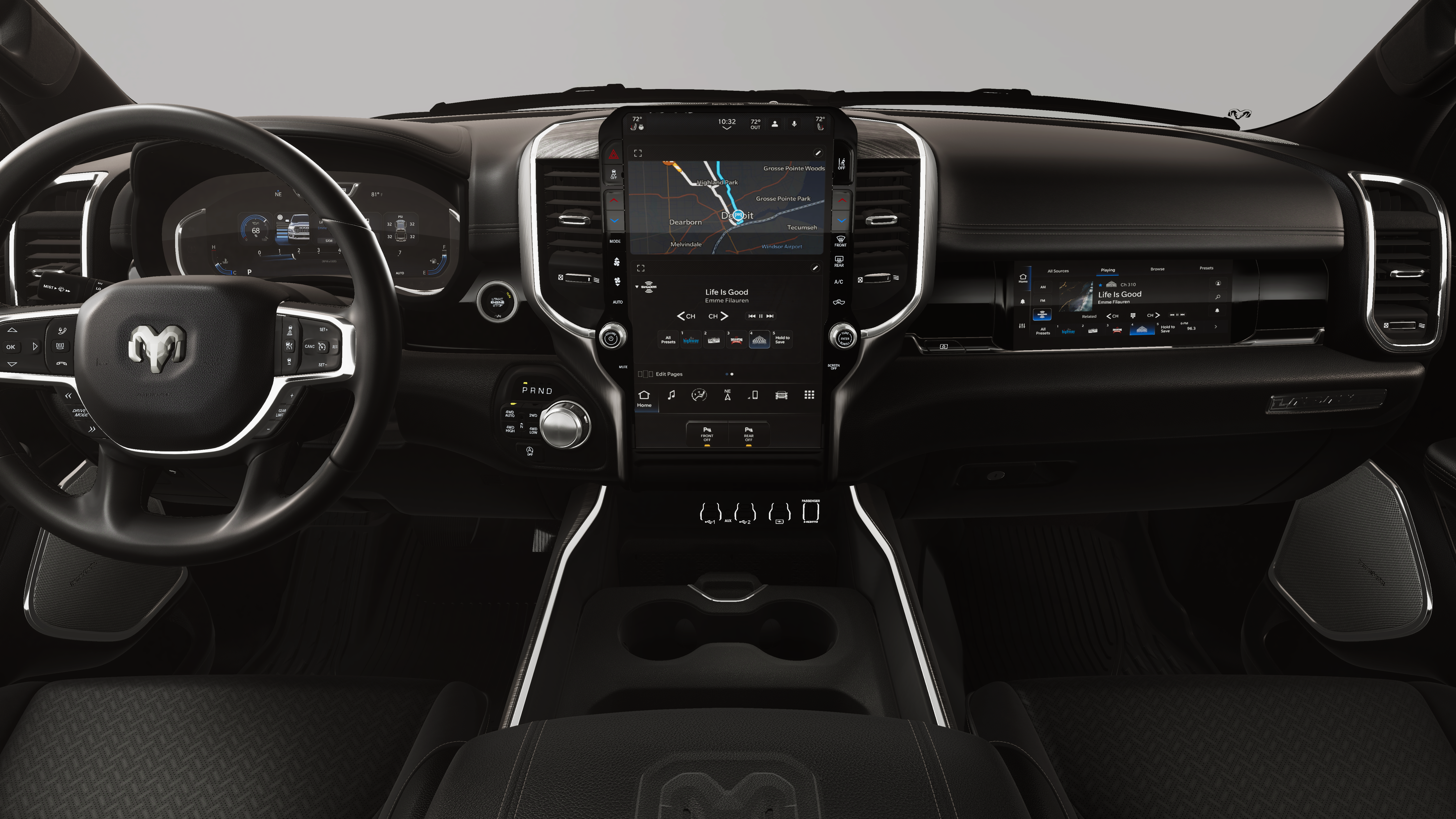 NIGHT EDITION Black Headlamp Bezels, Wheels: 22 x 9 Forged Aluminum, Tires: 285/45R22XL BSW All Season, Pirelli Brand Tires, Proximity Approach/Departure Lamps, Anti-Spin Differential Rear Axle, Accent Color Door Handles, Black Interior Accents, Body Color Front Bumper, Grille Surround 3 Black Texture 2 Black, Body Color Rear Bumper w/Step Pads, RAM Grille Badge - Black, Black Painted Exterior Mirrors Caps, Exterior Mirrors Approach Lamps, Accent Color Premium Power Mirrors, Sport Performance Hood, Black Exterior Truck Badging, Accent Color Tailgate Handle, Dual Exhaust w/Black Tips, Black Tail Lamp Bezels, LARAMIE LEVEL 2 EQUIPMENT GROUP Rain Sensitive Windshield Wipers, 14.4 Touchscreen Display, Front Passenger Interactive Display, Radio: Uconnect 5 Nav w/14.4 Display, harman/kardon® 19 Speaker Premium Sound, Cluster 12 TFT Color Display, Power Tailgate, DUAL-PANE PANORAMIC SUNROOF LED Dome/Reading Lamp, Dome Dual LED Reading Lamp, ENGINE: 5.7L V8 HEMI MDS VVT ETORQUE 48V Belt Starter Generator, Heavy Duty Engine Cooling, Passive Tuned Mass Damper, Delete Alternator, Passive Cold End Exhaust, 18 Aluminum Spare Wheel, BED UTILITY GROUP MOPAR Spray In Bedliner, MOPAR 4 Adjustable Cargo Tie-Down Hooks, Exterior 115V AC Outlet, MOPAR BLACK TUBULAR SIDE STEPS, MOPAR FRONT & REAR RUBBER FLOOR MATS, TRANSMISSION: 8-SPEED AUTOMATIC (8HP75) (STD).