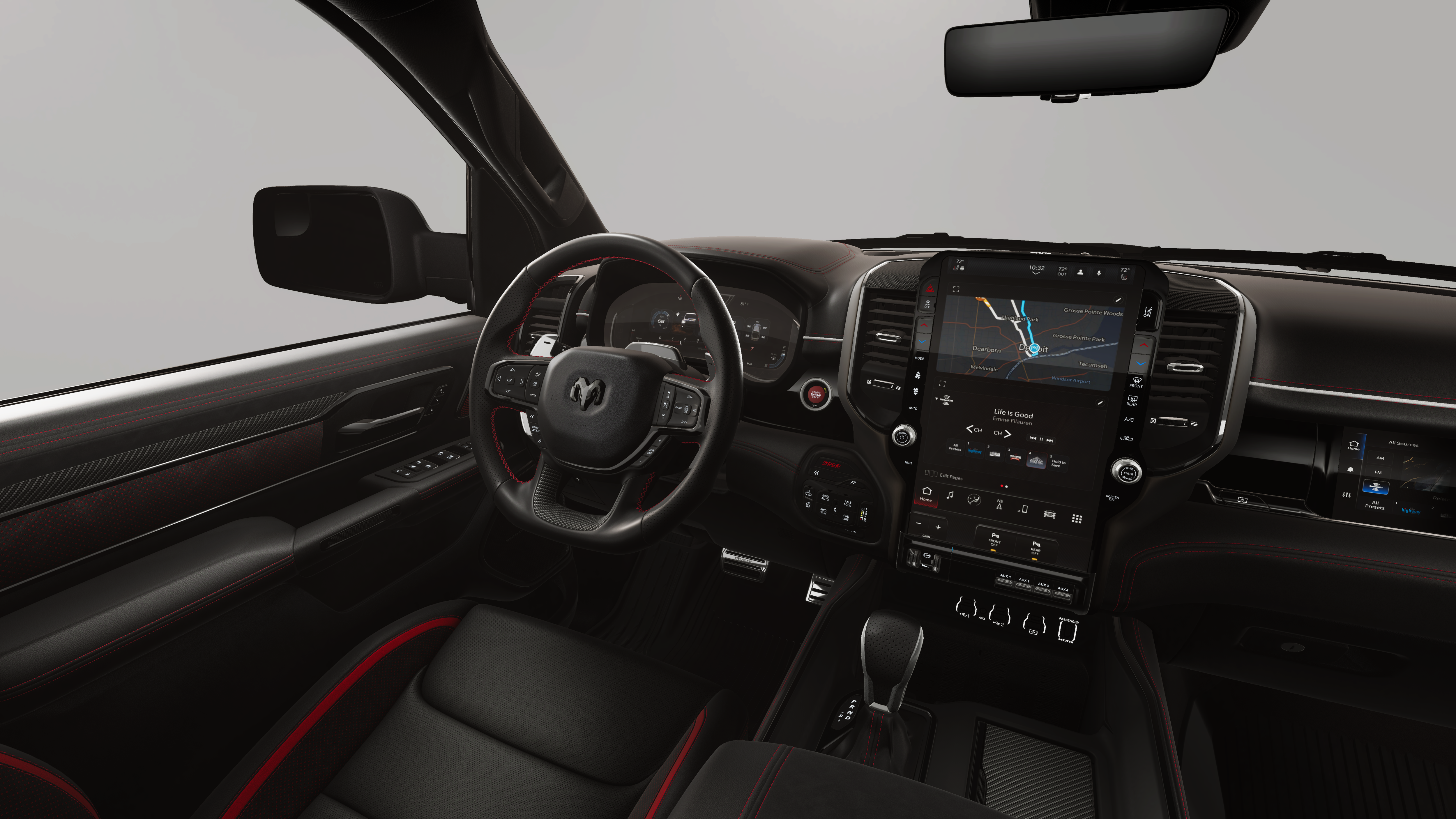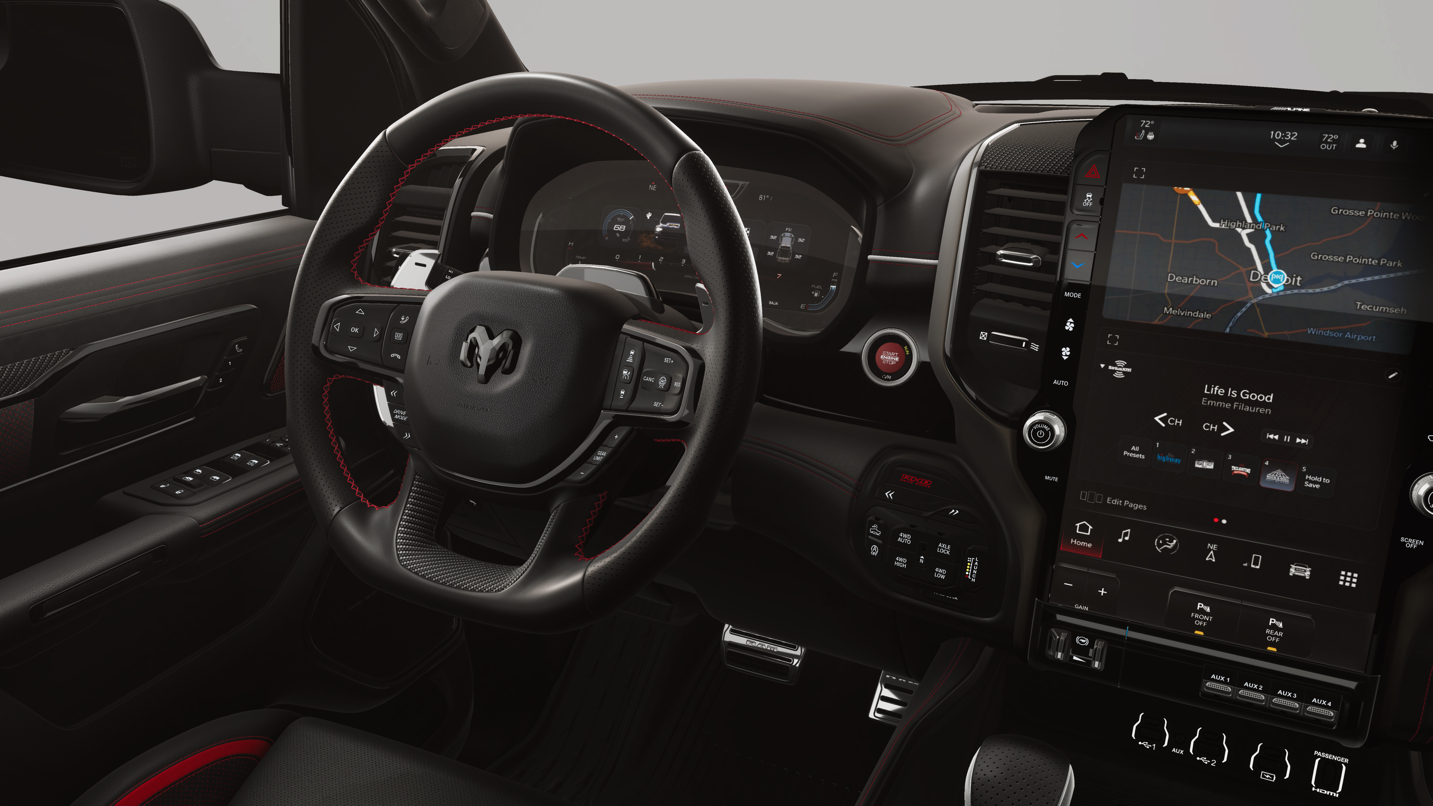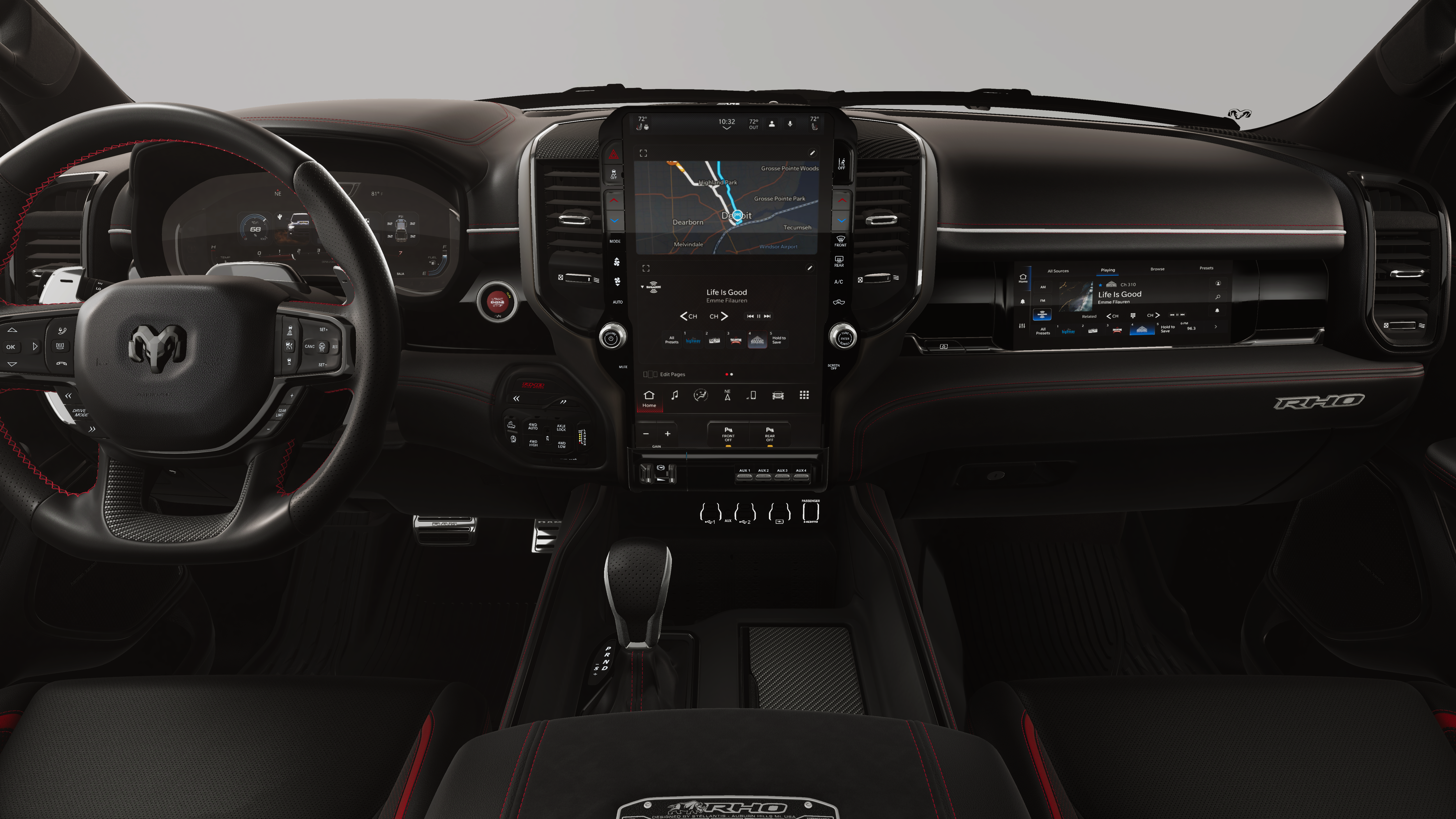 RHO LEVEL 1 EQUIPMENT GROUP Full Length Premium Upgraded Floor Console, Surround View Camera System, Rain Sensitive Windshield Wipers, LED CHMSL Lamp, Power Adjustable Pedals w/Memory, Front Passenger Interactive Display, Traffic Sign Recognition, Hands-Free Active Driving Assist System, Front Passenger Power Seat Back Massage, Head Up Display, Evasive Steer Assist, Heated Second Row Seats, Drowsy Driver Detection, Driver Power Seat Back Massage, Intersection Collision Assist System, Leather/Carbon Flat-Bottom Steering Wheel, Smartphone As A Key Capable, 14.4 Touchscreen Display, Driver/Passenger Wrapped Assist Handles, Dual Wireless Charging Pad, Radio: Uconnect 5 Nav w/14.4 Display, Ventilated Rear Seats, Rear 60/40 Folding Split Recline Seat, 240 Amp Alternator, Ventilated Front, WHEELS: 18 X 9 BEAD-LOCK ALUMINUM, DUAL-PANE PANORAMIC SUNROOF Dome Dual LED Reading Lamp, TRI-FOLD TONNEAU COVER, TRANSMISSION: 8-SPEED AUTOMATIC (8HP75) (STD), ENGINE: 3.0L I6 HURRICANE HO TWIN TURBO ESS (STD).