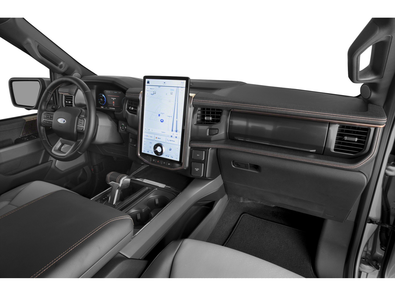 Leather Seats, Navigation, All Wheel Drive, Heated Driver Seat, Cooled Driver Seat. Ford LARIAT with Agate Black exterior and Black interior features a Electric Motor.