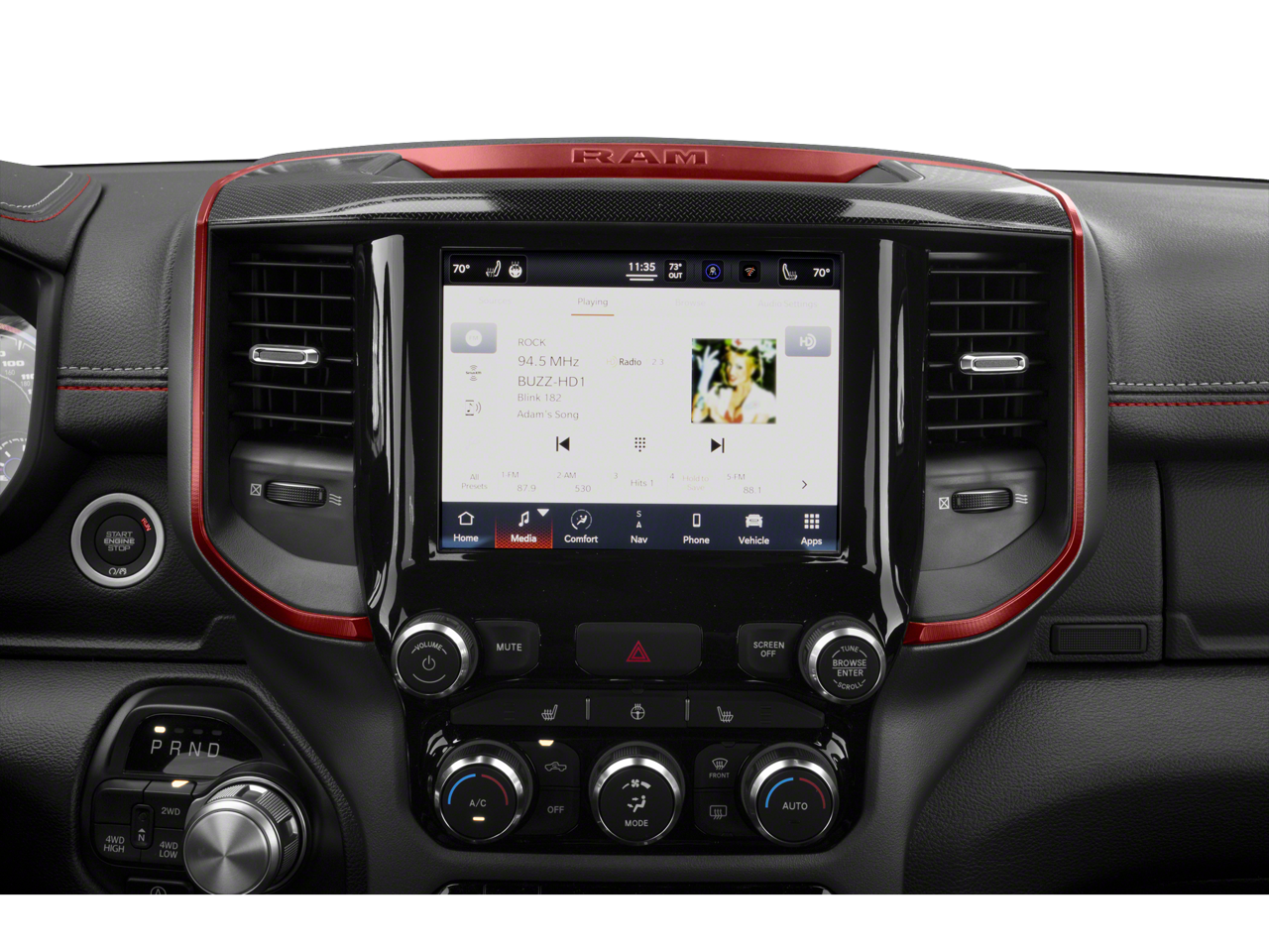4x4, Back-Up Camera, iPod/MP3 Input, CD Player, Onboard Communications System Ram Rebel with Diamond Black Crystal Pearlcoat exterior and Red/Black interior features a 8 Cylinder Engine with 305 HP at 6400 RPM*.