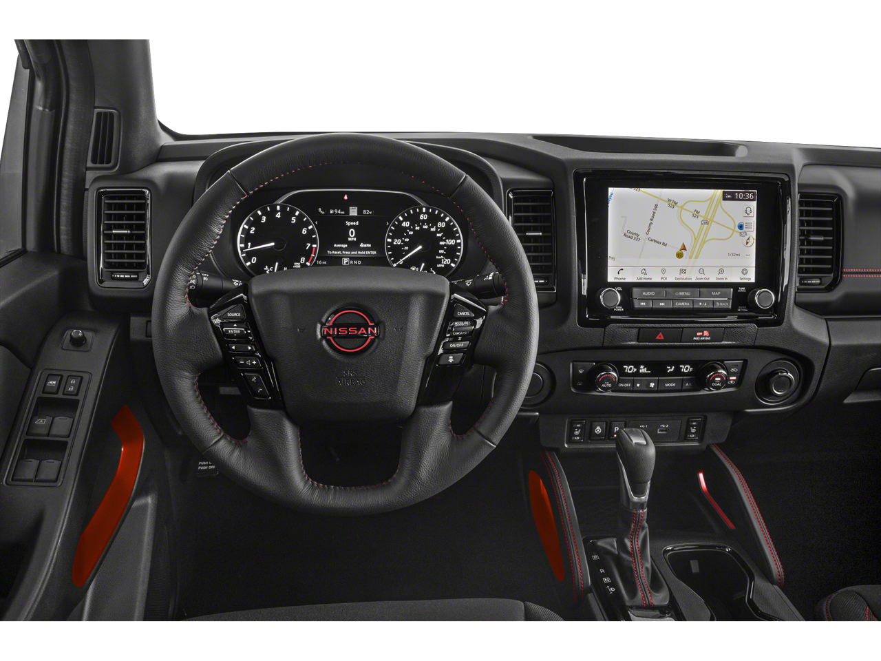 Navigation, 4x4, Satellite Radio, iPod/MP3 Input, Onboard Communications System Nissan PRO-4X with Super Black exterior and Charcoal w/Lava Red Stit interior features a V6 Cylinder Engine with 310 HP at 6400 RPM*.